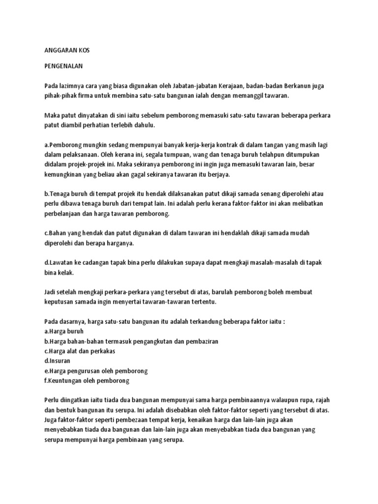 Cost Studies Anggaran Kos Kerja Bangunan Pdf